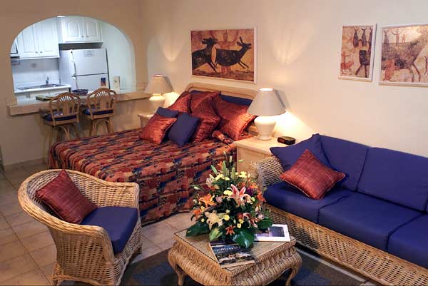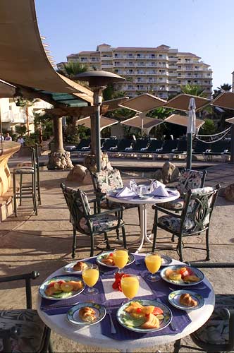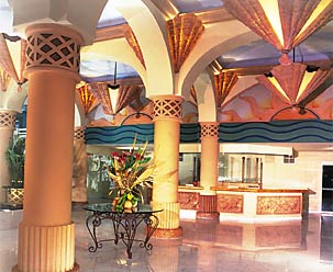 Villa del Palmar Beach Resort and Spa combines the natural beauty and charisma of Los Cabos, Baja California Sur, Mexico, with five star accommodations and world class ammenities. Located on a beautifully pristine swimming beach just 20 minutes walking distance to downtown Cabo San Lucas, Villa del Palmar offers the perfect blend of location, intimacy, relaxation and recreational activities. From the moment our guests enter the nine story atrium lobby with it's dramatic waterfalls, salt water aquarium and seashell chandeliers, they realize they have made an excellent choice for their stay in Los Cabos! Relax with that special someone on our white sand beach where attendants cater to your every whim, or enjoy the activity surrounding our pool area featuring two Jacuzzis and a whale waterslide. Our activities department is also sure to keep you and your family entertained during your stay with daily scheduled activities, nightly theme dinner parties and our daily children's program "Kids in Paradise." Watersports and tours can also be arranged on-site. Villa del Palmar has one of the finest European Style SPAs Los Cabos has to offer. Our SPA pampers it's patrons with exotic body treatments in it's 10,000 square foot state-of-the-art facility. The full service Fitness Center, with the latest in cardiovascular exercise, full range of "Paramount" workout equipment and a wide variety of free weights, provides the perfect environment for the health-minded traveler. Experience our Restaurant Bella California, offering the finest in Italian-Californian cuisine with the most spectacular view of the Sea of Cortes and the famous El Arco (The Arch at Land's End). Or treat yourself to an evening at Las Tortugas featuring gourmet international cuisine with nightly entertainment, where guests can dine in air conditioned comfort or outside on the terrace under the romantic Los Cabos sky. Villa del Palmar has 458 suites including junior suites, one, two and three bedroom deluxe suites. Each of our accommodations features a fully equipped kitchen and private balcony. With two lighted tennis courts, a deli convenience store, laundry facilities and meeting space for 150 people. |