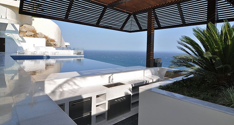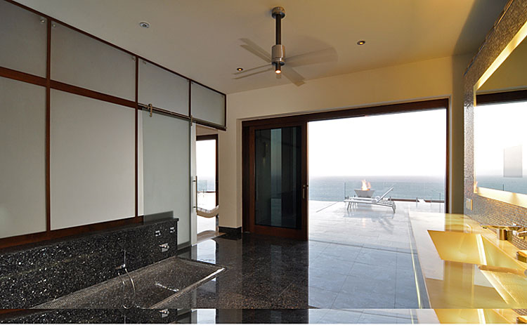 Cabo San Lucas is known for it's amazing year round climate where doors and windows rarely need to be closed. Casa Tokase utilizes natural airflow through cooler tropical pools and gardens to moderate the temperature in the house and incorporating ceiling fans minimizes the need for air conditioning. The architect explains, "Beauty is in the detail and must coexist with function. I will not compromise on either."