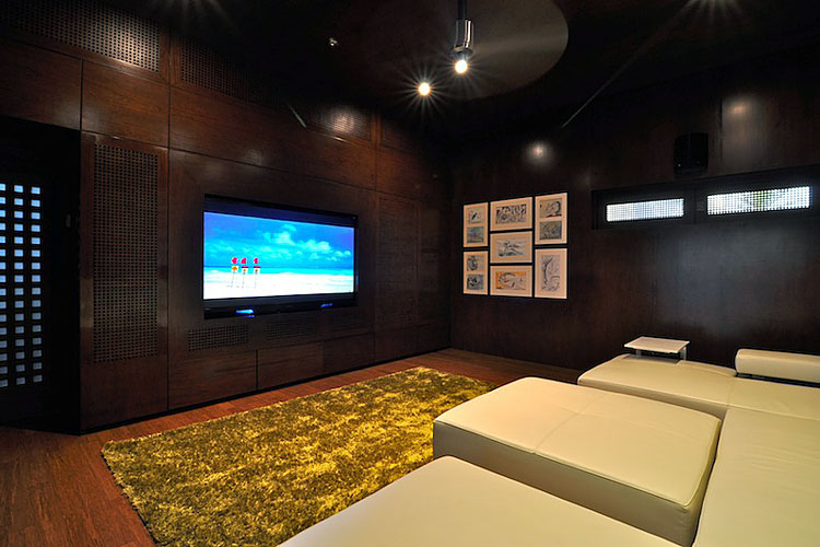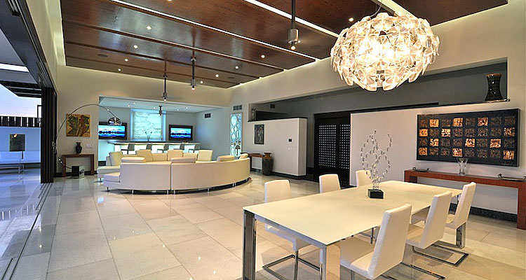 The architectural design embraces the sea and natural elements with warm wood and cool stone. Water plays a prominent role in the home’s architectural design, which includes, three 12 foot high waterfalls, two swimming pools, reflecting pool, and spa. The entire house is operated by state-of-the-art Control4 IPAD’s, programmed for lighting, audio, video and temperature control.